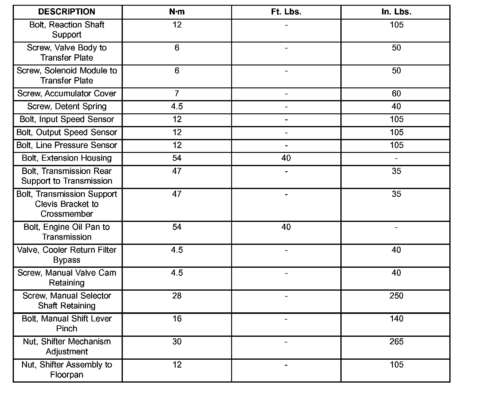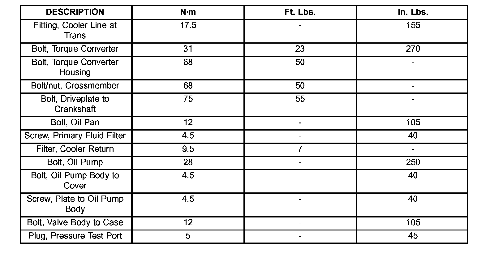 TORQUE SPECIFICATIONS: