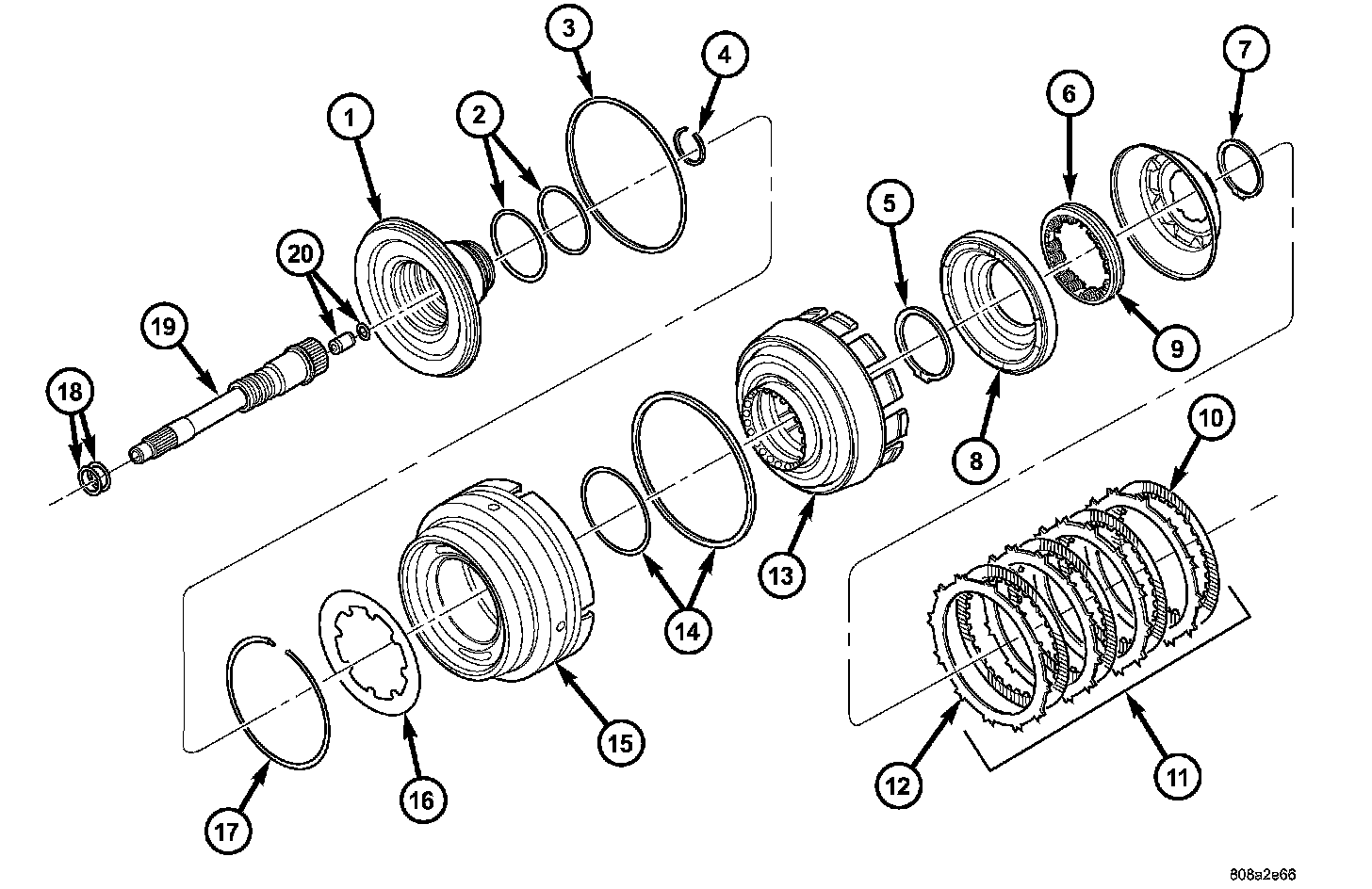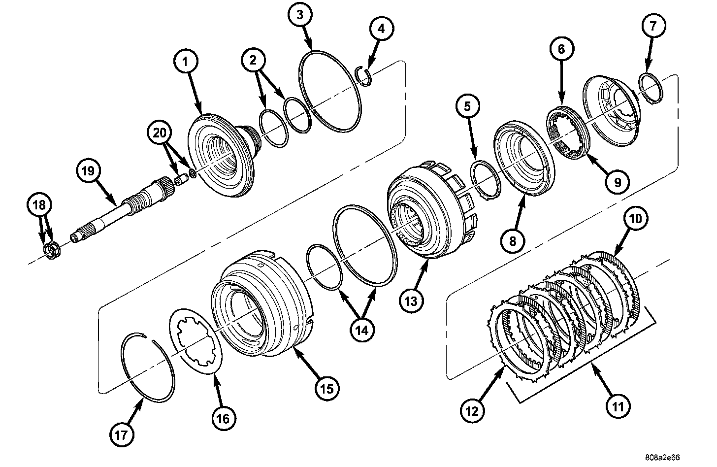 20. Separate OD/reverse piston (15) from input clutch hub retainer (13).