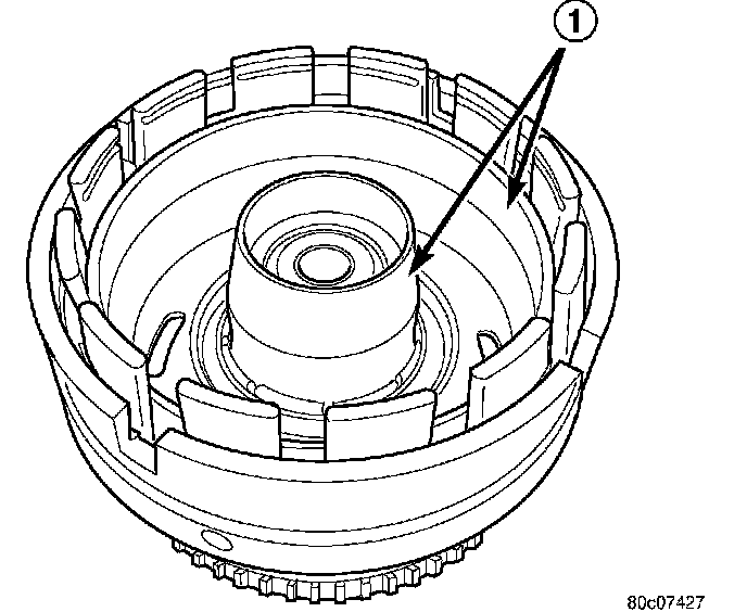 6. Install Piston Installer 8504 (1) into the input clutch retainer and onto the input clutch hub to guide the inner and outer underdrive piston seals into position.