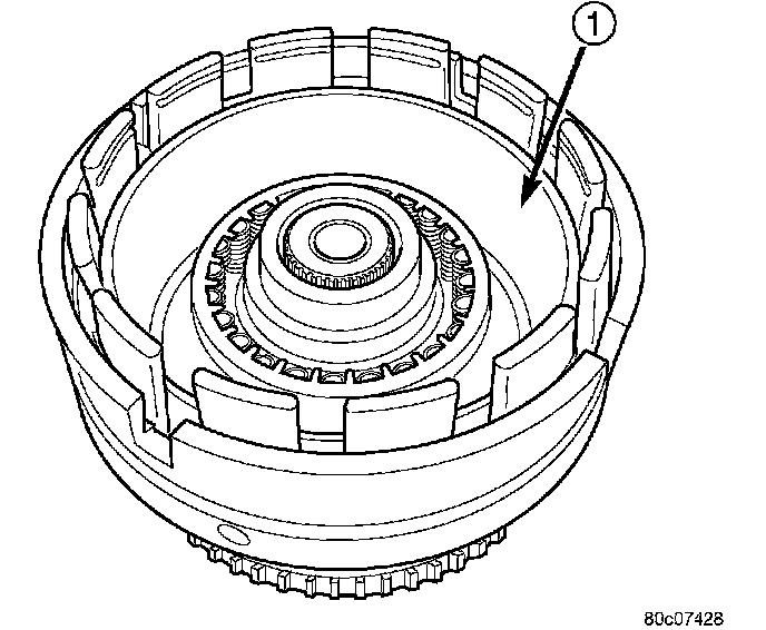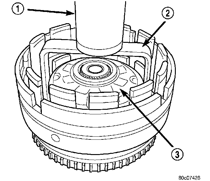 31. Install the overdrive hub (2) into the input clutch retainer.