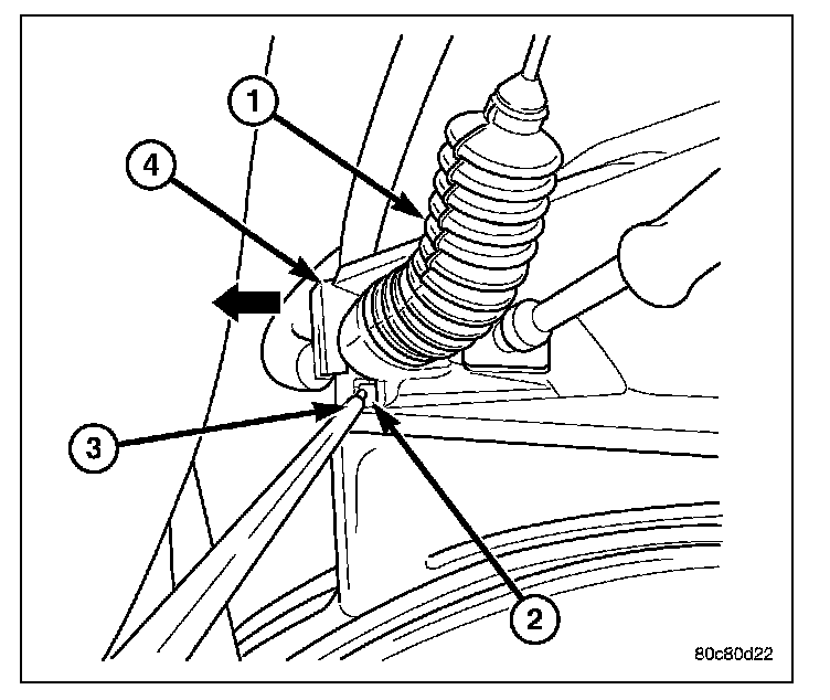 4. Using a pick or small screwdriver, press release tab (2) to release plastic cable mount from bracket. Press on tab only enough to release cable from bracket. If tab is pressed too much, it will be broken. Slide plastic mount (4) towards right side of vehicle to remove throttle cable from throttle body bracket.