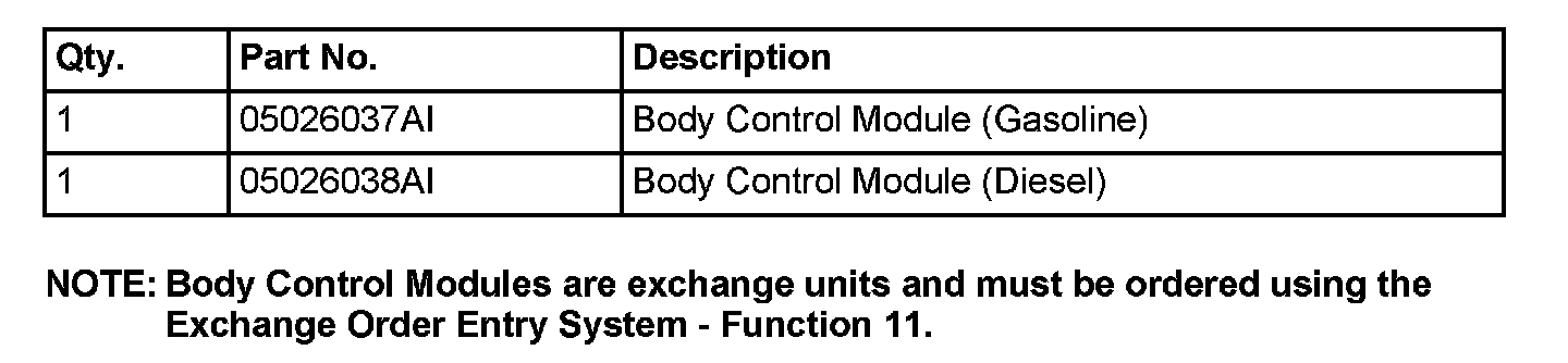 Using the procedures outlined in the Service Information on TechCONNECT, Section 8 - Electrical, 8E - Electronic Control Modules, Body Control Module, Removal & Installation, Install the Body Control Module listed in the "Parts Required Section".