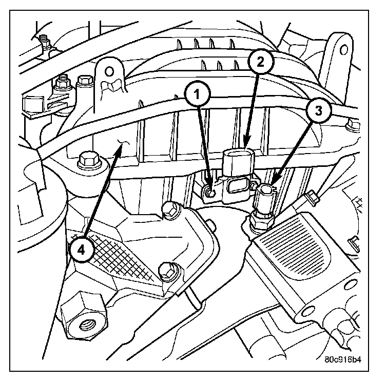 The Manifold Absolute Pressure (MAP) sensor (2) is mounted into the front of the intake manifold. An O-ring is used to seal the sensor to the intake manifold.