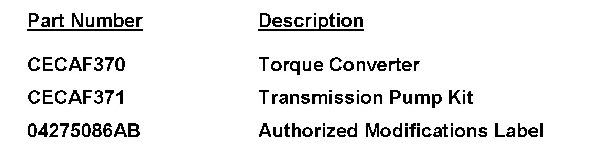 ^ To correct this condition, the torque converter must be replaced and both the ECM and TCM must be reprogrammed. The repair involves a small reduction in engine torque to enhance torque converter and transmission durability.