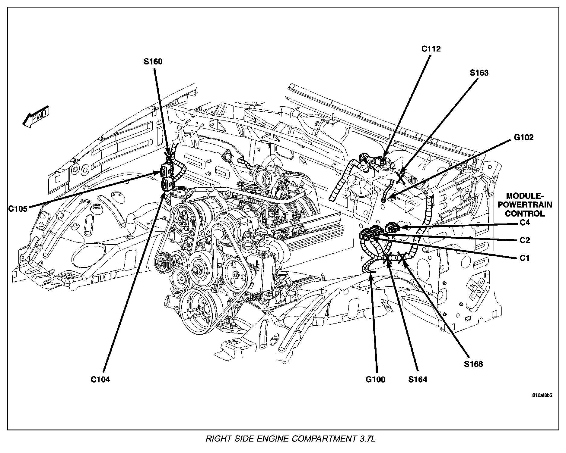 Right Side Engine Compartment 3.7L: