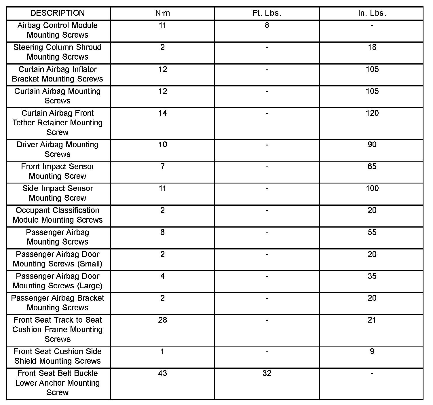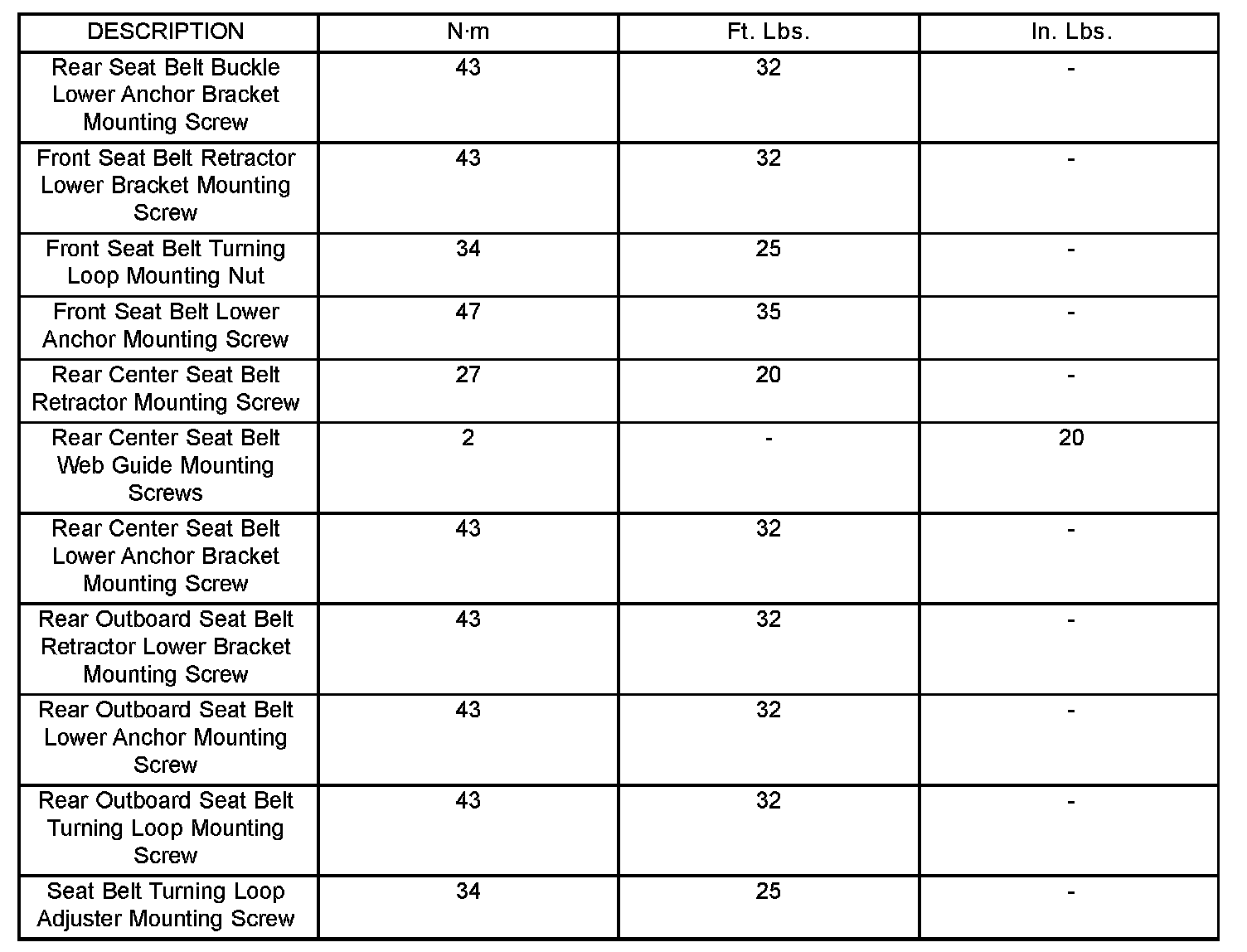 Torque Specifications (Part 1):