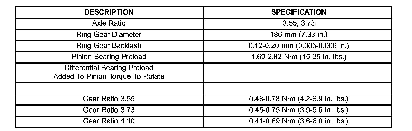 AXLE SPECIFICATIONS: