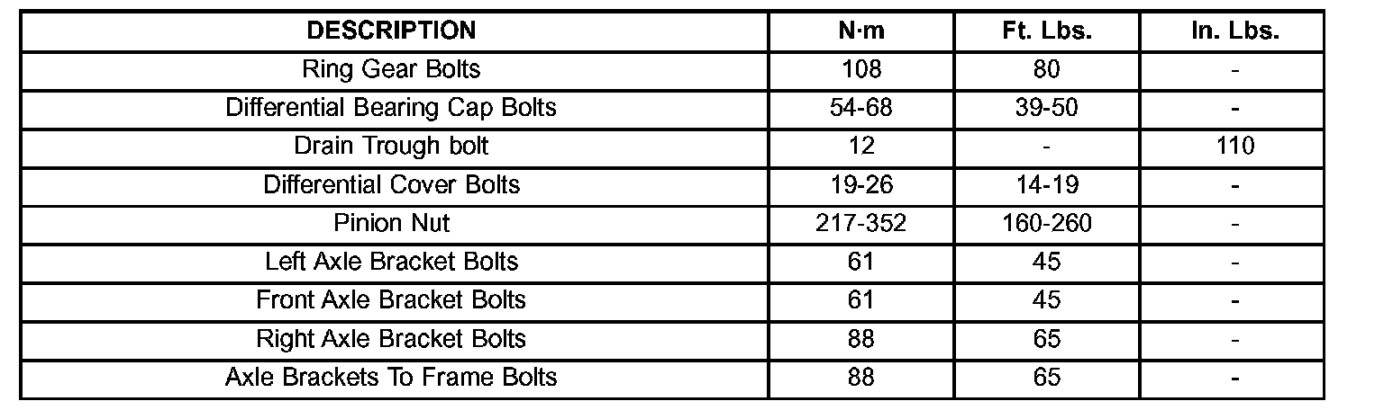 TORQUE SPECIFICATIONS: