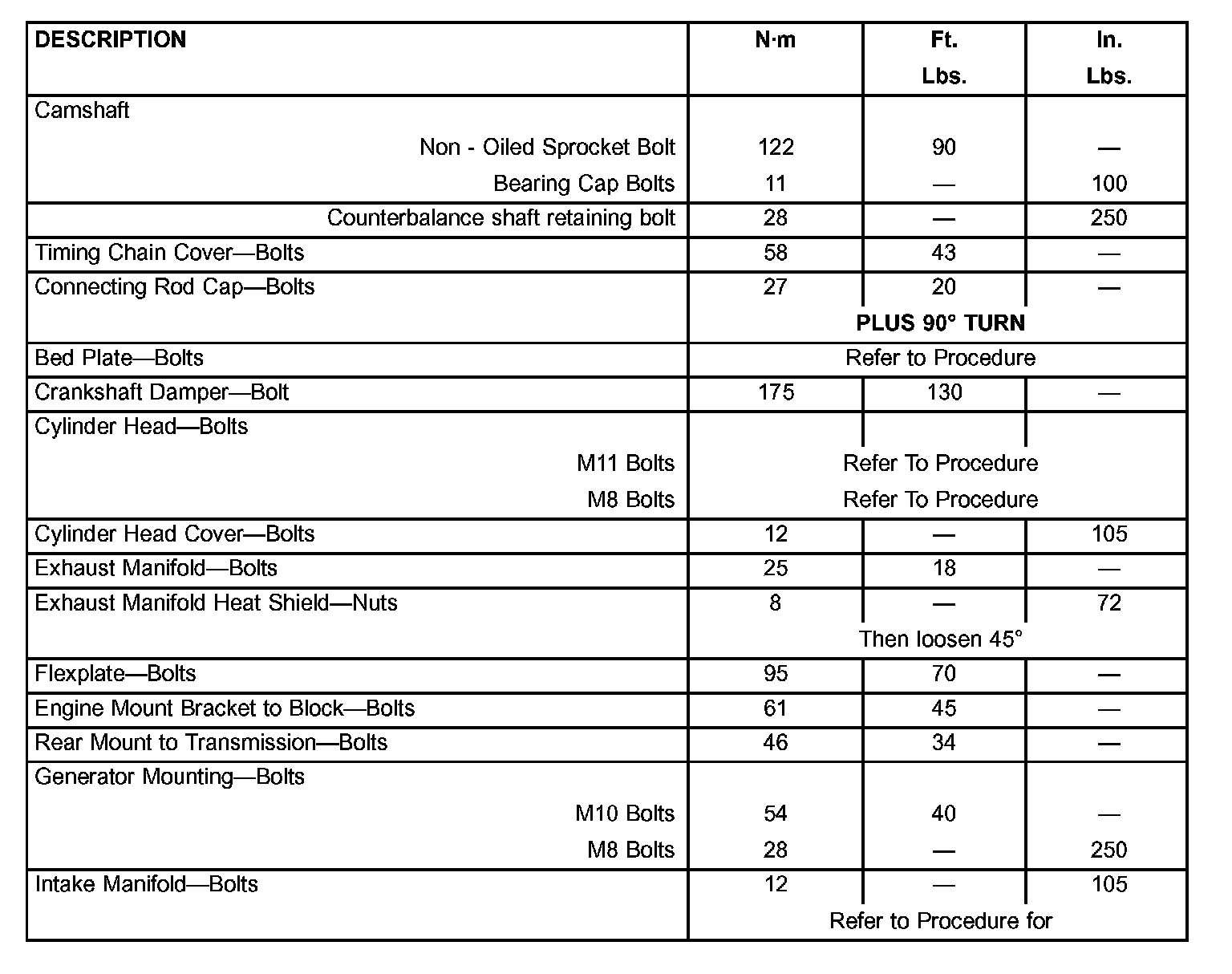 Engine Torque Specifications