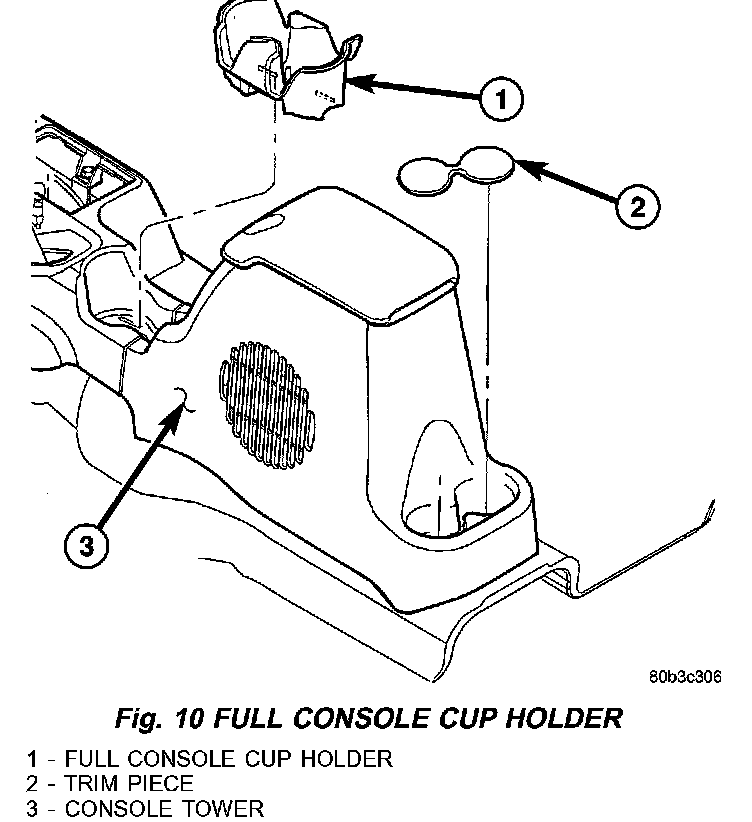 2. On full console models remove the trim disc from the bottom of the cup holder (Fig. 10).