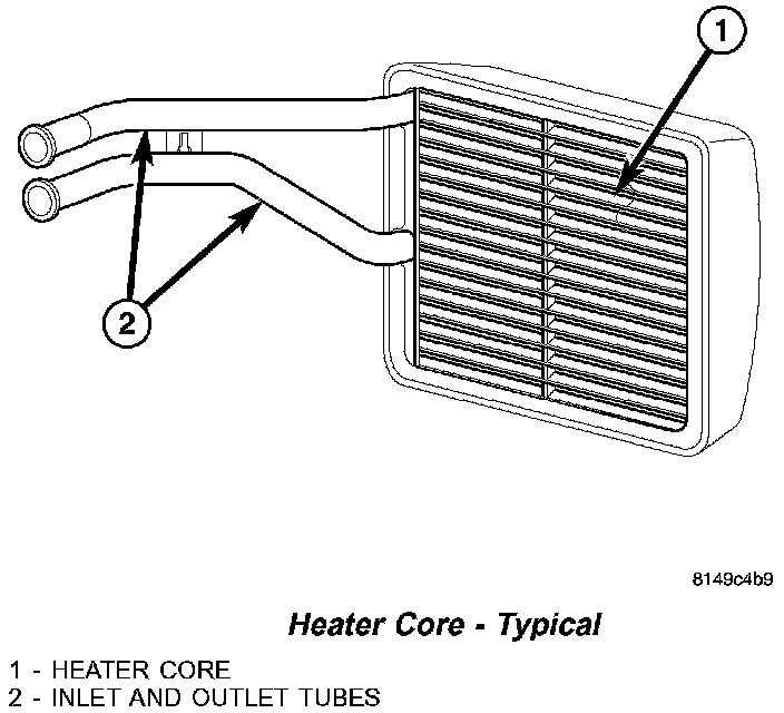 The heater core is mounted in the HVAC housing, located behind the instrument panel. The heater core is a heat exchanger made of rows of tubes and fins. The heater core inlet and outlet tubes are integral to the heater core and cannot be serviced separately.