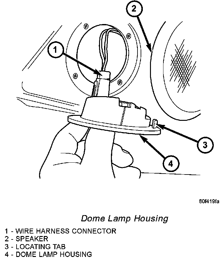 NOTE: The dome lamp housing is equipped with a locating tab that must be inserted into the slot in the speaker housing.