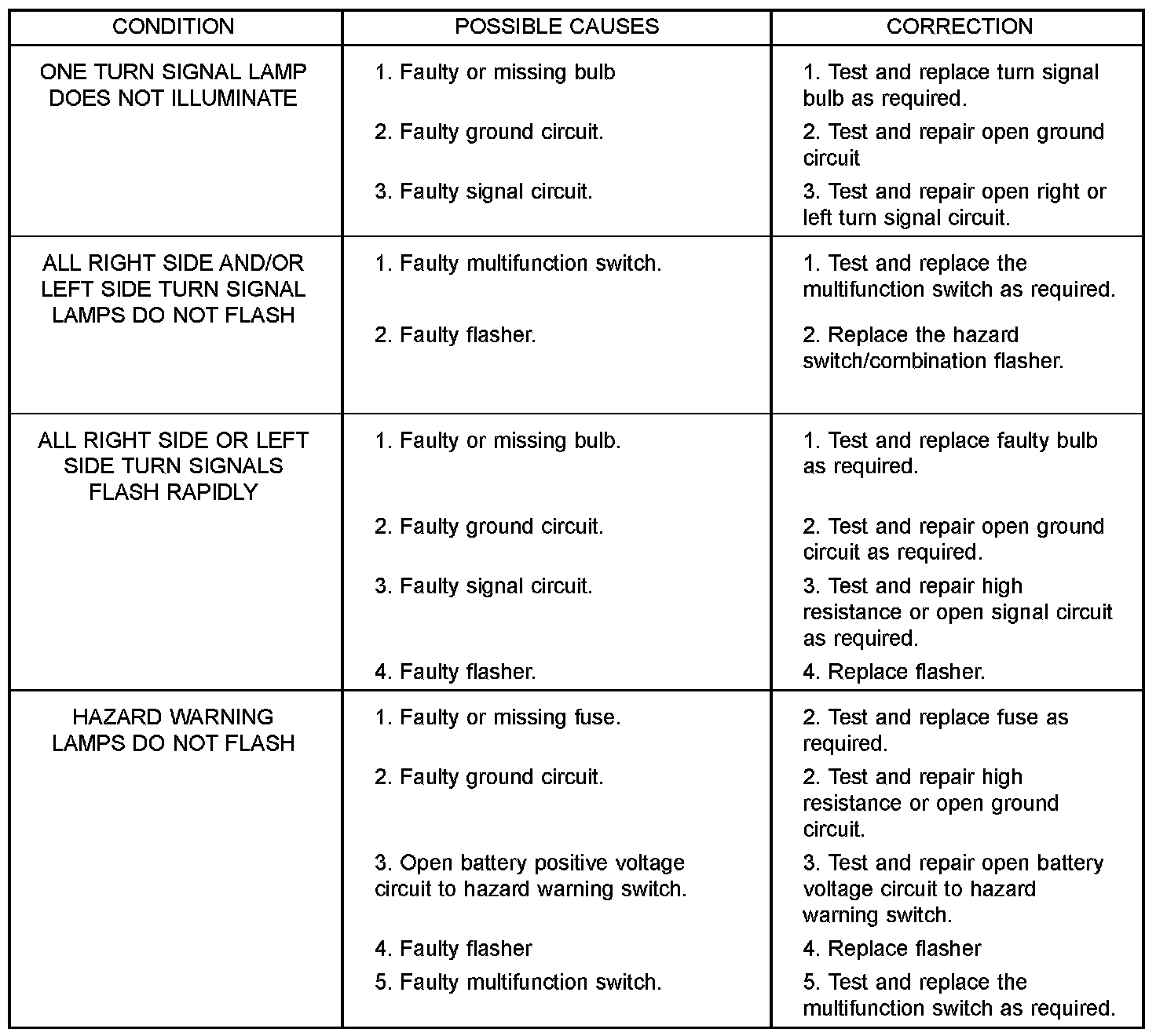TURN SIGNAL & HAZARD WARNING SYSTEMAlways begin any diagnosis by testing all of the fuses and circuit breakers in the system. Refer to the appropriate wiring information.