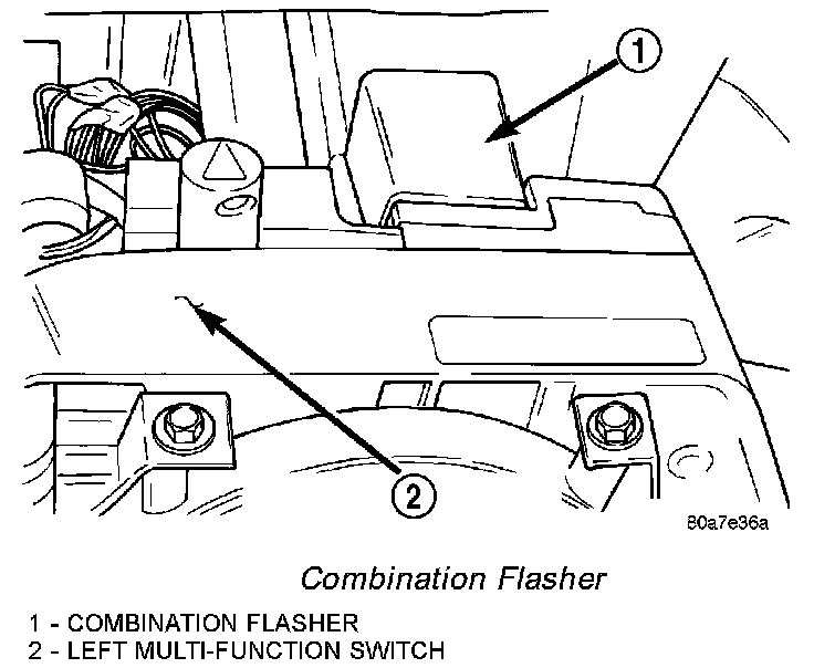 1. Align the combination flasher terminals with the terminals in the connector on the back of the left multi-function switch housing.