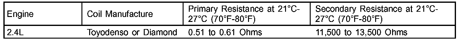 Ignition Coil Resistance - 2.4L: