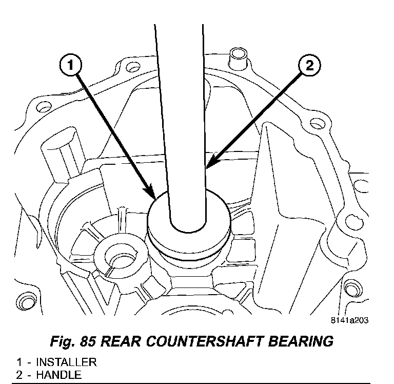 1. Install countershaft bearing (Fig. 85) into rear housing with Installer 9643 (1) and Handle C-4171.