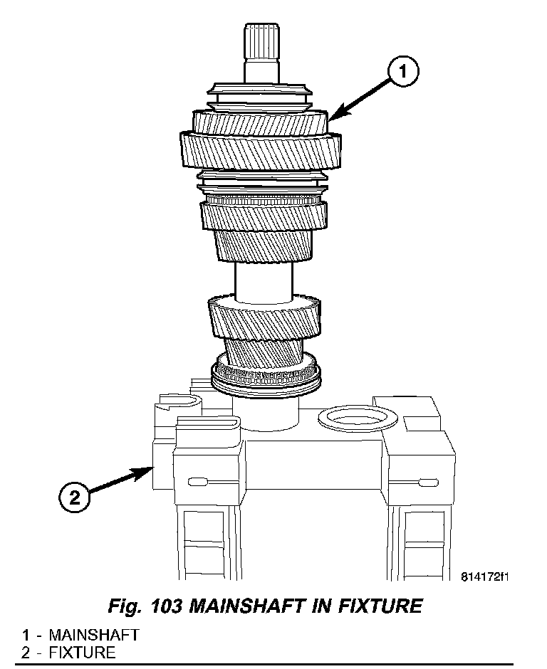 1. Install mainshaft (1) onto Build Fixture 9633 (2) (Fig. 103).