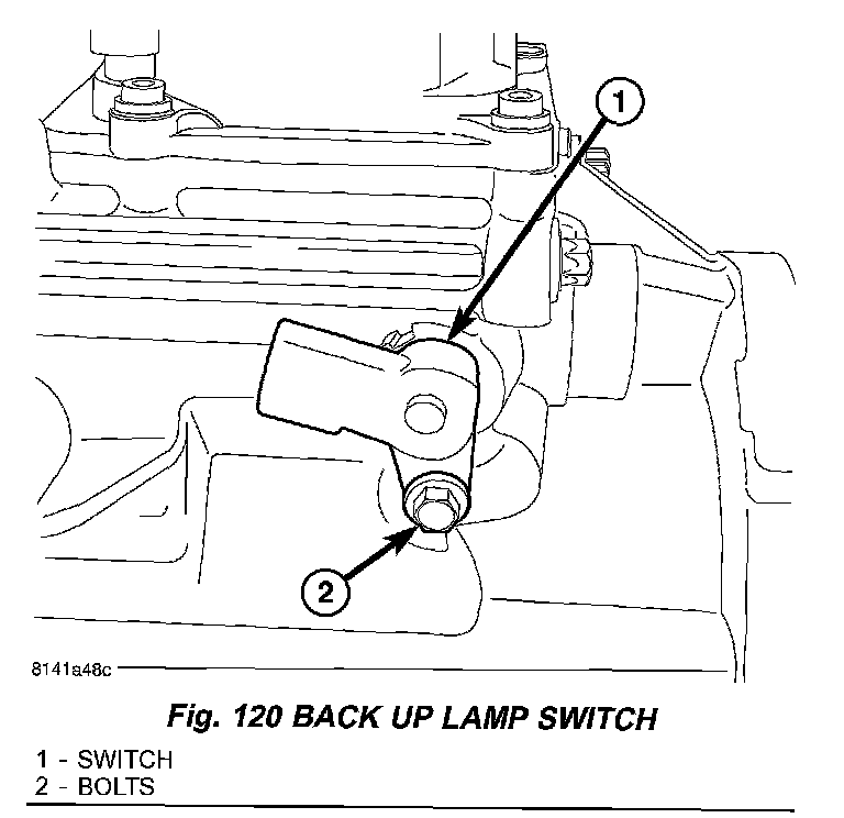 22. Install back up lamp switch (1) and bolt (2) (Fig. 120).