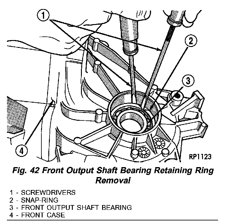 2. Remove the front output shaft bearing retaining ring with screwdriver (Fig. 42).
