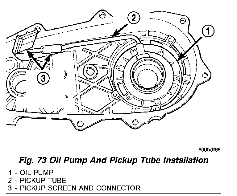 Fig. 73 Oil Pump And Pickup Tube Installation: