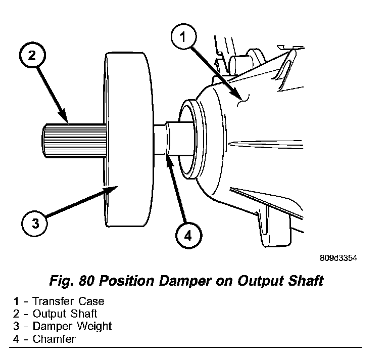 NOTE: Vehicles built with a 4.0L engine and a manual transmission use a damper weight on the transfer case output shaft. Be sure to identify the transfer case before proceeding.
