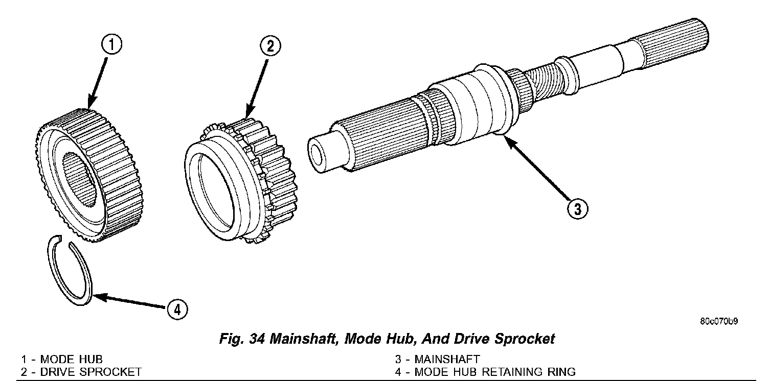 Fig. 34 Mainshaft, Mode Hub, And Drive Sprocket: