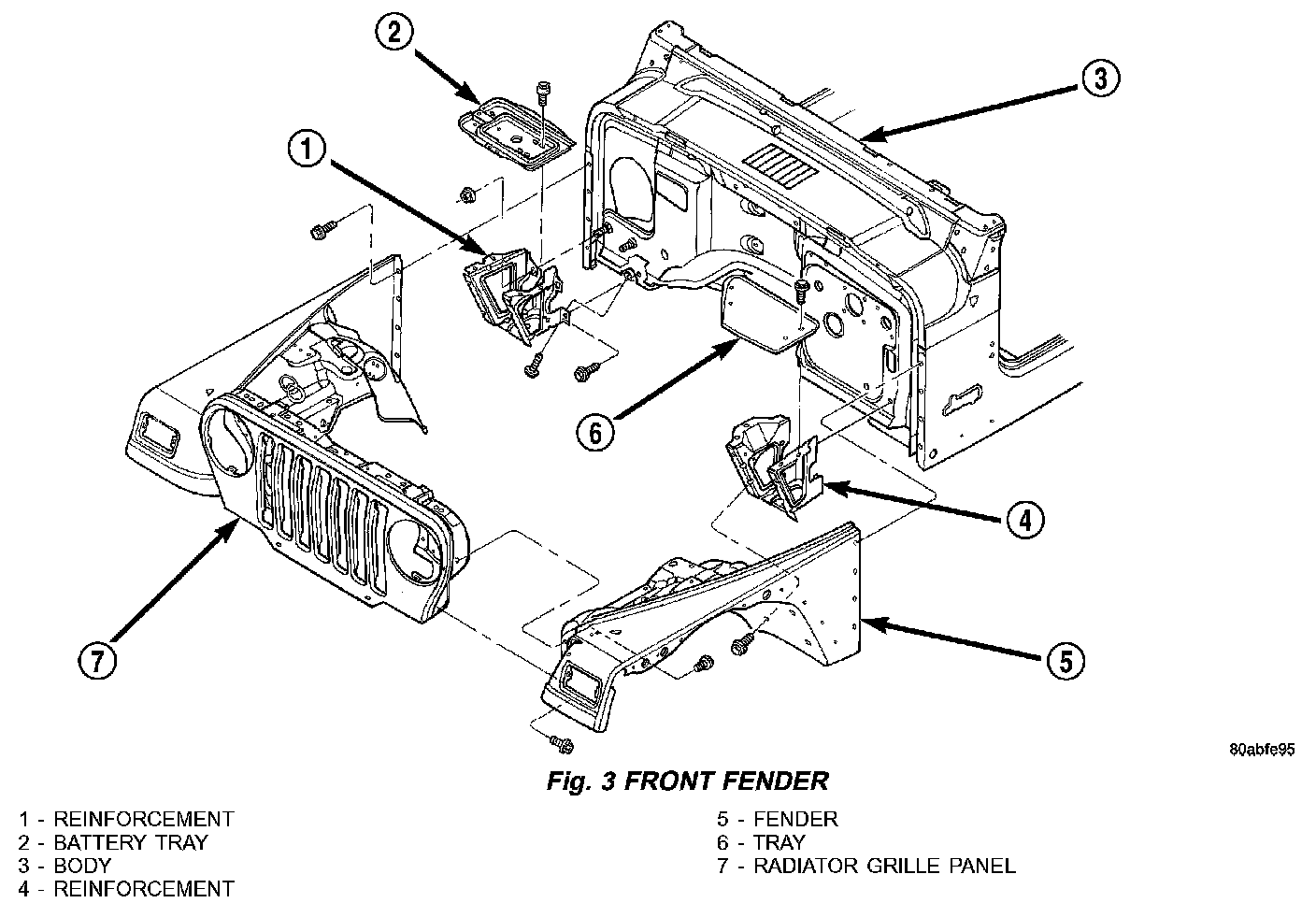 11. Remove the bolts attaching the fender to the cowl (Fig. 3).