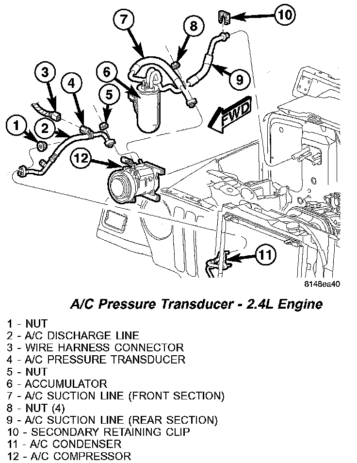 3. Remove the A/C pressure transducer from the A/C discharge line and remove and discard the O-ring seal.