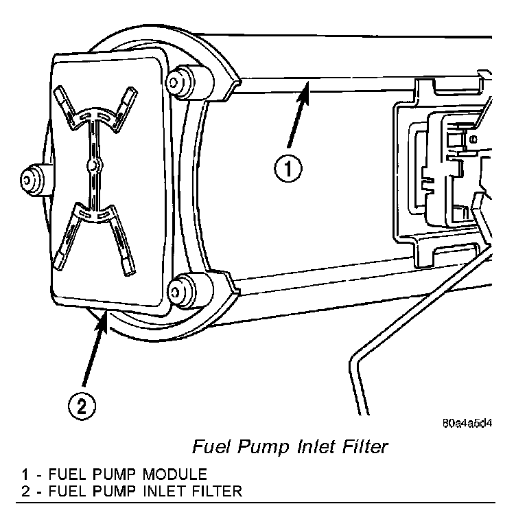 The fuel pump inlet filter (strainer) is located on the bottom of fuel pump module. The fuel pump module is located on top of fuel tank.REMOVAL