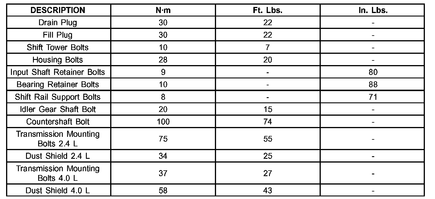 MANUAL TRANSMISSION - NSG370 TORQUE SPECIFICATIONS: