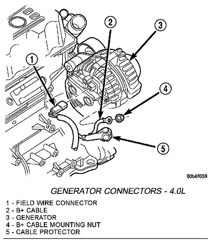 REMOVALWARNING: DISCONNECT NEGATIVE CABLE FROM BATTERY BEFORE REMOVING BATTERY OUTPUT WIRE (B+ WIRE) FROM GENERATOR. FAILURE TO DO SO CAN RESULT IN INJURY OR DAMAGE TO ELECTRICAL SYSTEM.