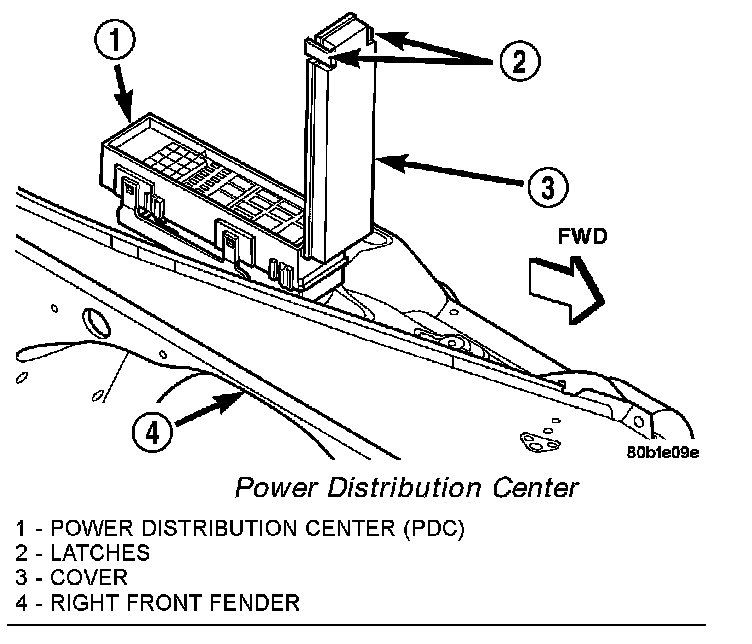 2. Unlatch and open cover on Power Distribution Center (PDC).