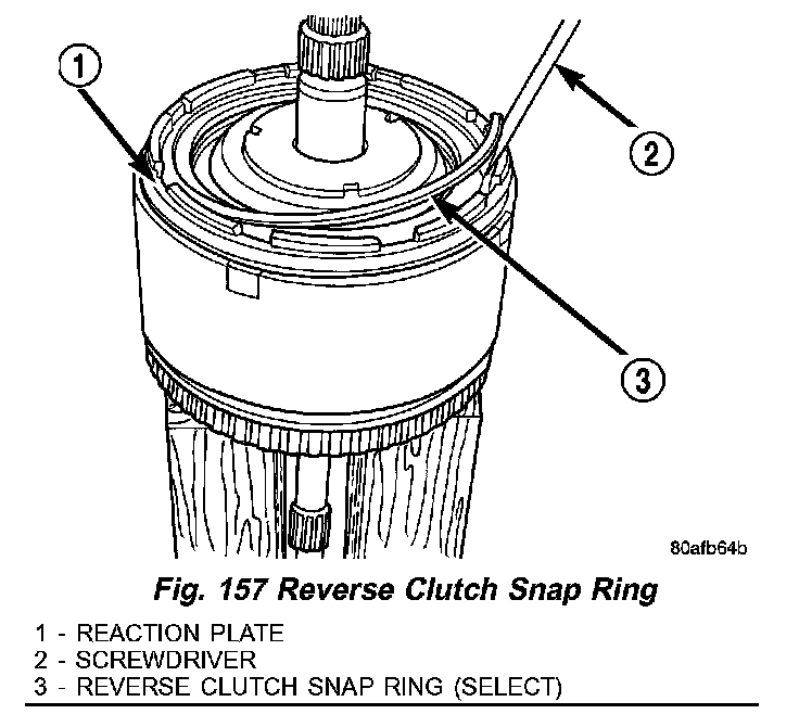 3. Remove reverse clutch snap ring (3) (Fig. 157).