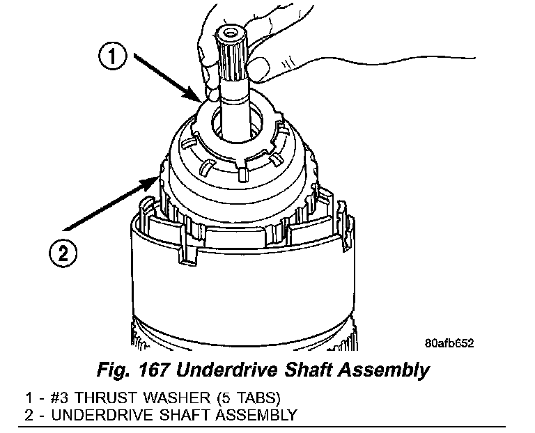 13. Remove the underdrive shaft assembly (2) (Fig. 167).