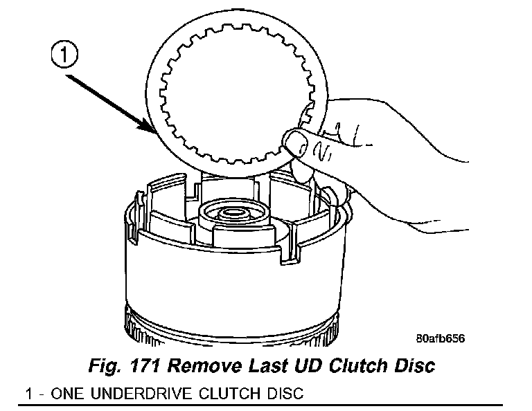 17. Remove the first UD clutch disc (1) (Fig. 171).