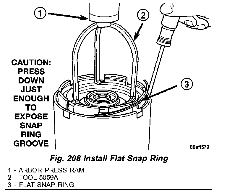 27. Install OD reaction plate flat snap ring (3) (Fig. 208).