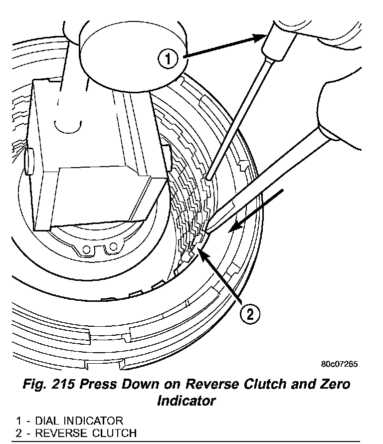 Fig. 215 Press Down on Reverse Clutch and Zero Indicator: