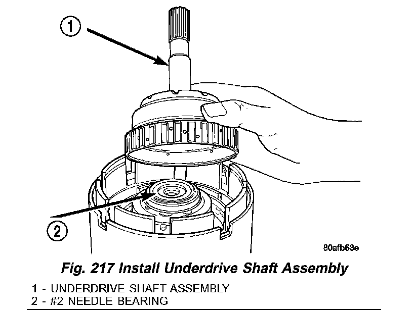 41. Install the underdrive shaft assembly (1) (Fig. 217).