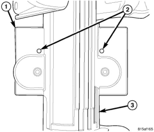 4. Depress the two spring clips that secure the shaft lock module to the mounting bracket (1) on the steering column by inserting a suitable drift or punch into the release holes (2) on the upper surface of the bracket opposite the module.