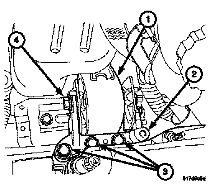 3. Install engine mount adapter (2) and tighten bolts (3). Install mount through bolt (4) and tighten to 118 Nm (87 ft. lbs.).