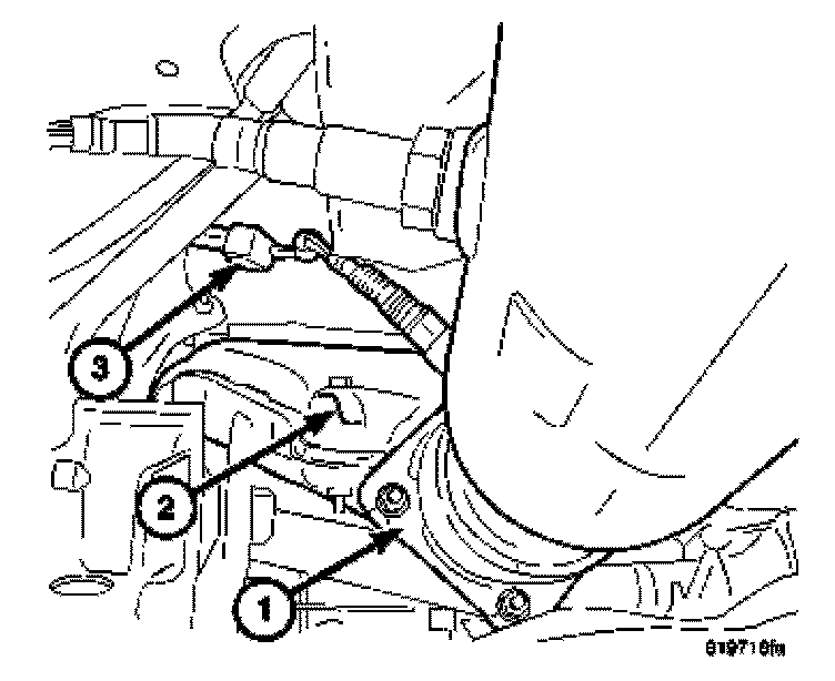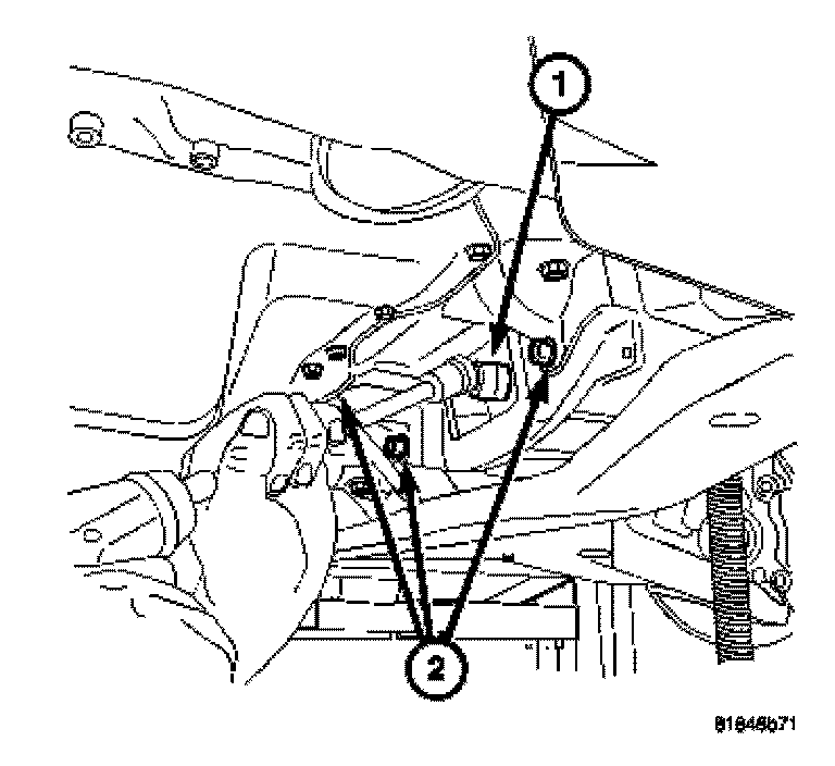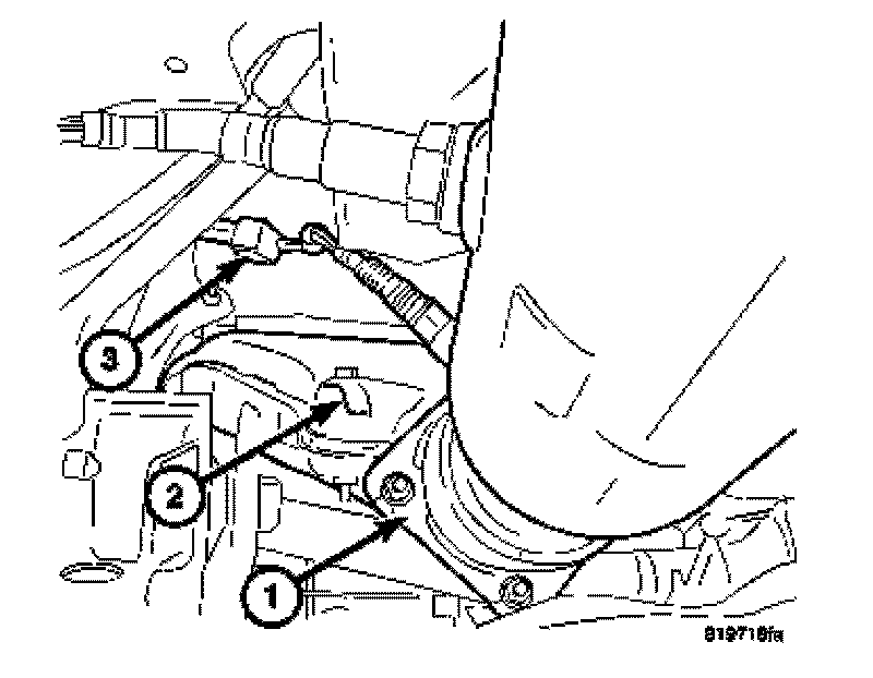 13. Install lower bell housing bolts (2) and tighten bolts.