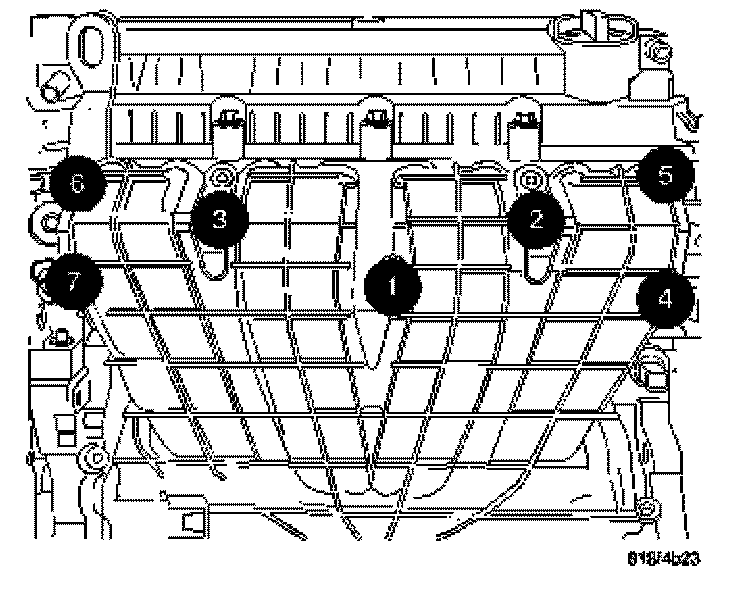 31. Install intake manifold and tighten bolts as shown.
