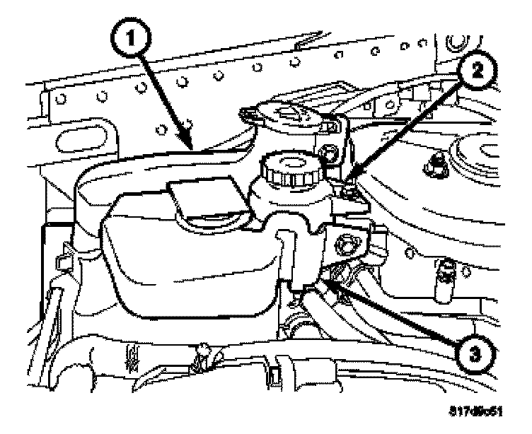 49. Install coolant reservoir (3) and connect hose.
