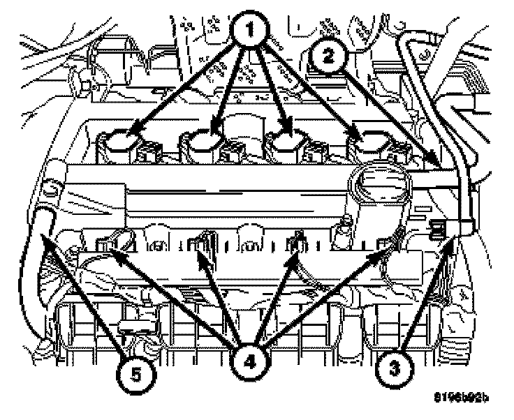 28. Connect PCV hose (5) to PCV valve.
