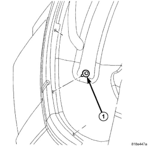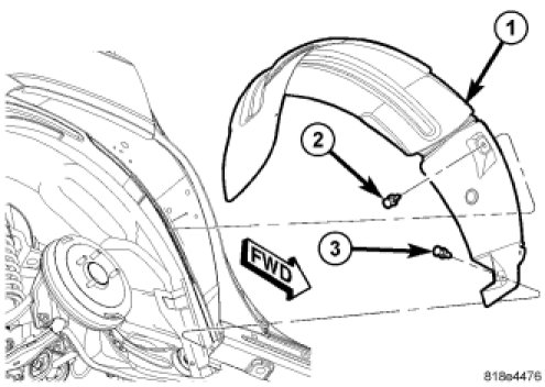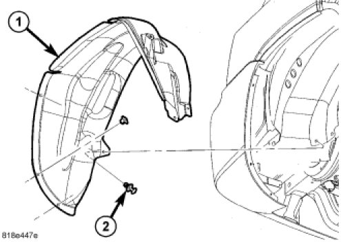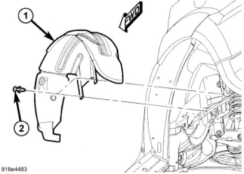 1. Install the splash shield (1) and install the inner push pin fasteners.