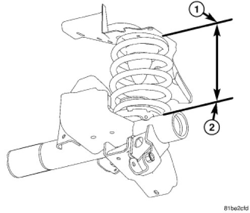 4. Rear - On each side of the vehicle, measure the distance from the axle tube (2) and the bottom of the upper spring perch (1).