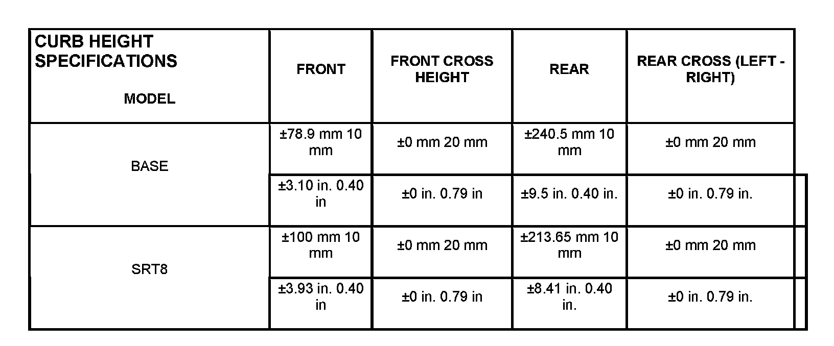 5. Compare the measurements to the specifications listed in the following Curb Height Specifications chart.