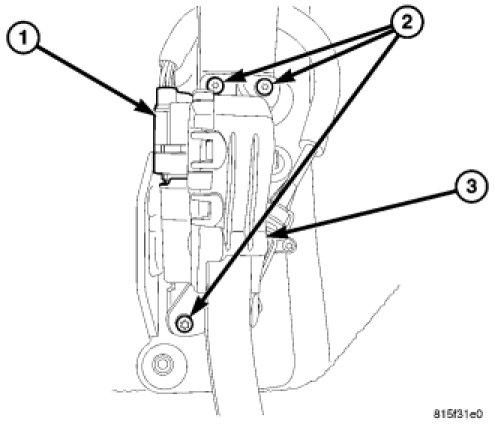 2. Position the accelerator pedal assembly (3) and install the fasteners (2).
