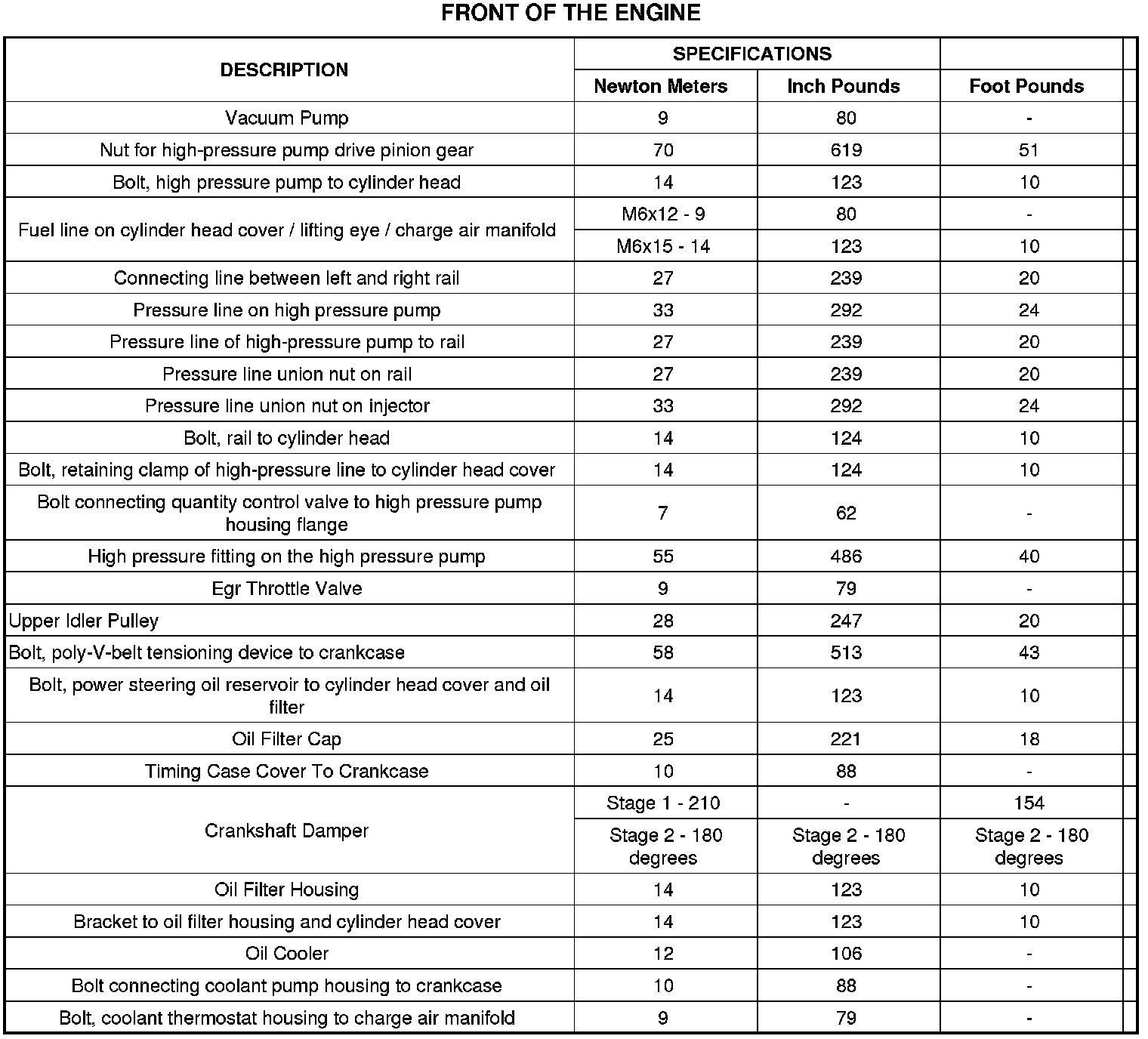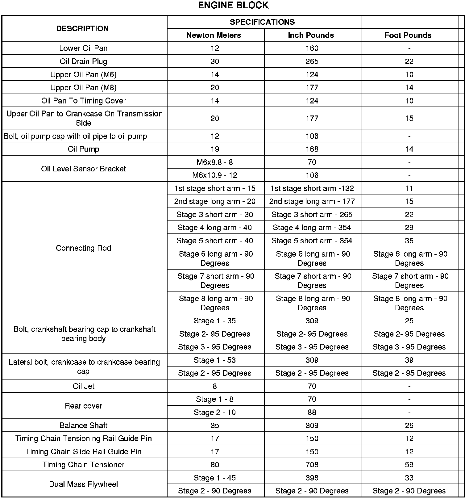 Engine Torque Specifications