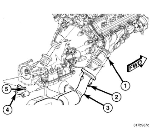 7. Tighten the front exhaust pipe and catalytic converter assembly to muffler flange nuts to 47 Nm (35 ft. lbs.) torque.